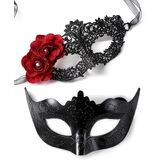 Elegant Design: The women's mask features a delicate lace material adorned with a stunning rose flower accent on the right side, adding a touch of sophistication and charm for a refined look at any masquerade event