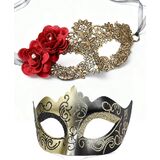 Perfect for Couples: This 2-piece set is designed for couples, allowing you to coordinate your look with complementary masks. The women's mask features a beautiful lace design with floral accents, while the men's mask highlights elegant, painted floral details for a balanced pairing