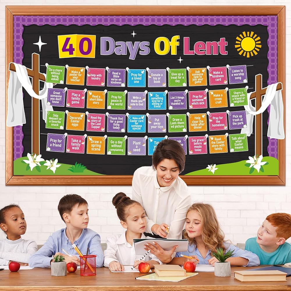 Easter Bulletin Board Decorations 40 Days of Lent Chart Cutouts Christian Religious Classroom Decorations Jesus Cross Cutouts Lent Days Chart for Catholic Sunday School Offices Library Wall Door Decor
