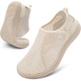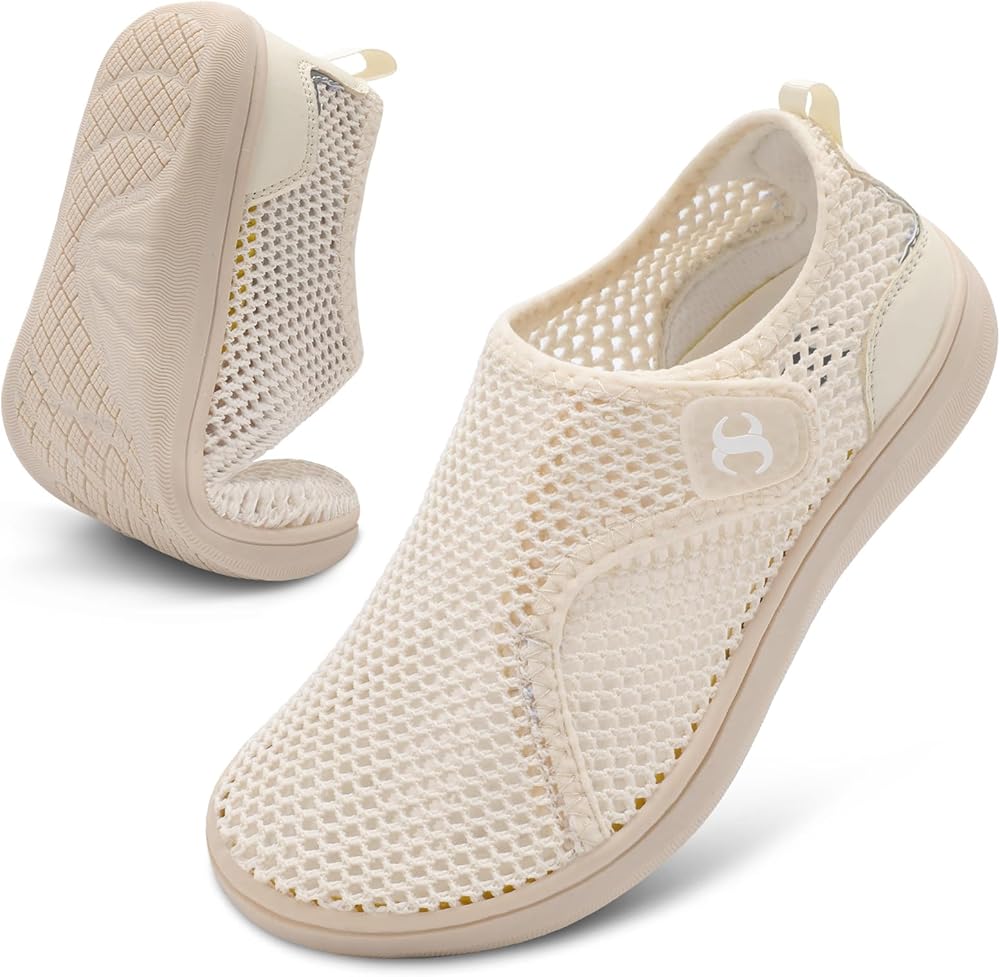 Feature: Adjustable, comfortable, zero drop, minimalist, extra wide, nonslip, flexible, breathable Uppers: Breathable hollow-out knit fabric provides maximum comfort Outsole: Flexible zero drop flat rubber sole with non-slip grip Midsole: Removable soft foam padding insole reduces sweating and odors Occasion: These womens wide width shoes are perfect for daily wear, such as indoor and outdoor walking, camping, shopping, driving,Beach, pool,cruise ship,long flights, vacation, etc. Hook and loop closures meets the needs of different foot types. They are Machine Washable Friendly and are suitable for all seasons