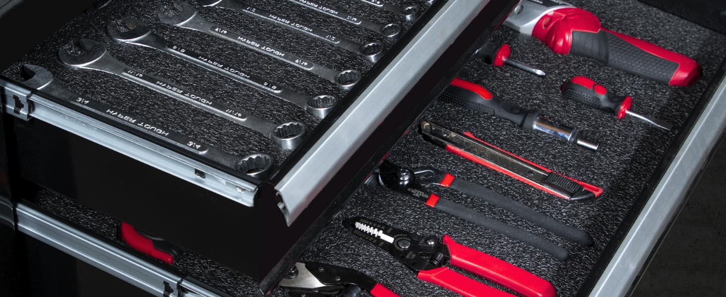 VERSATILE USE: Toolbox drawer foam sheets can be used in various types of toolboxes, cabinets, cases, roolling tool chests. It can also be used for DIY projects, crafts, shipping, packaging, decorations, and model making. The toolbox foam is perfect to fit any brand tool box such as Craftsman, Snap on, Husky, Milwaukee, Dwalt, US General and so on.