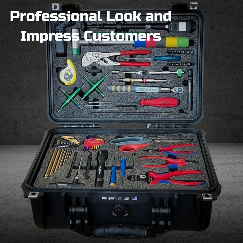 ADJUSTABLE SIZE & EASY CUSTOMIZATION: Tool foam inserts are easily customizable to match the size and shape of your tools. With a simple outline and cut, you can create designated spots for each tool, ensuring a perfect fit. This not only keeps your tools organized, but also adds a professional and polished look to your toolbox.