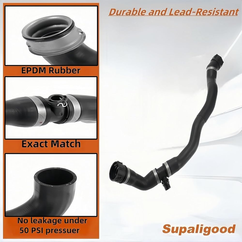 [ Leak-Resistant ] The connector and inner diameter dimensions are compatible with the vehicle. The hose has grooves, and the O-ring to the radiator is sealing tightly enough. Avoid gaps or disconnections between the tube and the plastic attachment. The hose size is the same as the old one. Avoid the hose being too long/short; after installation, the hose is kinked. The upper coolant reservoir hose helps resist leaks even at a constant pressure of 50 PSI