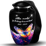 Elegant Memorial in Classic Black - This small black urn features a delicate butterfly design, honoring the spirit of transformation, beauty, and freedom. A refined way to remember someone deeply cherished.