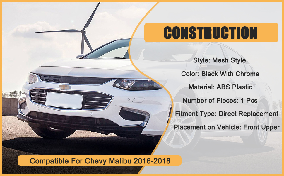 ★Adaptation: Front Upper Lower Grille compatible for Chevy Malibu 2016 2017 2018. Note: Not suitable for sports models. Also not fit for 2016-2018 Chevy Malibu Hybrid & Premier Sedan 4-Door.