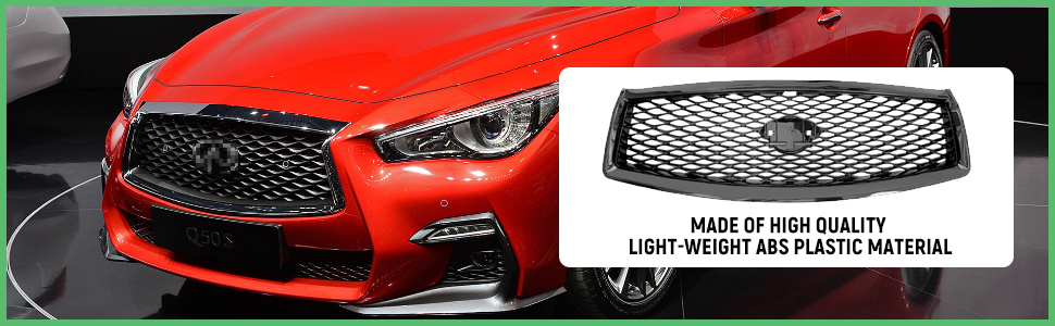 ☆Material: Infiniti Q50 Grille made of high quailty ABS material, overall durable construction can withstand heat generated by engine and sun exposure.