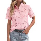 Eyelet Design: Featuring hollow out eyelets and embroidery, button closure, and delicate ruffle trim, these lace tops for women add bohemian and feminine charm. The button down shirts for women are ideal for women seeking fashion and comfort