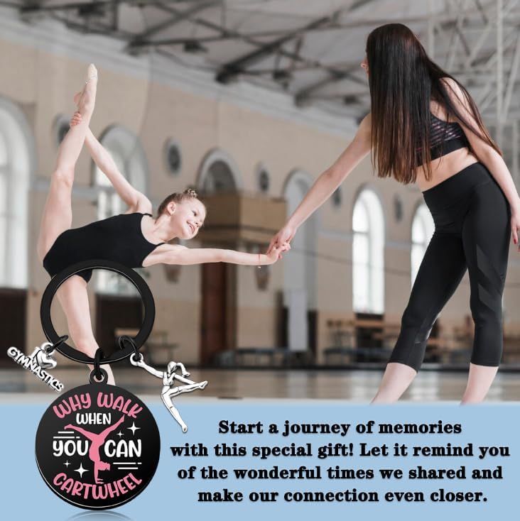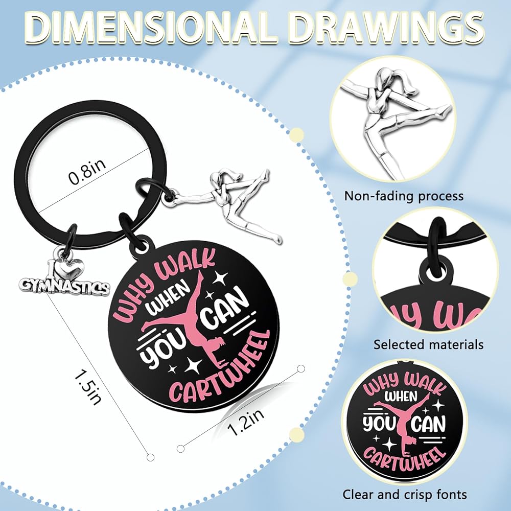 Gymnastics Gifts/Gymnastics Stuff: This gymnastics athlete keychain is an ideal choice for gymnastics gifts for girls. It features the inspiring phrase: why walk when you can cartwheel, making it a motivational keepsake for any young gymnast.