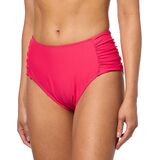 Make waves in Next Swim's comfortable and incredibly flattering bikini bottom. Made of NextFlex, our resilient, colorfast, moisture wicking, UPF 50 swim fabric that shadows your every move but will never stretch out. The Chopra Highwaist Full Tab Bottom has ruched side panels add comfort and ease. Pair it with any of our printed bra and tankini tops to complete the look.