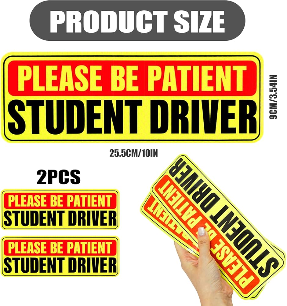 Value Pack of 2 for Multi-Position Placement: Includes two magnetic student driver signs, allowing placement on both the rear and side of the vehicle for maximum awareness. Encourages other drivers to avoid tailgating and excessive honking, helping create a safer, calmer driving experience for new drivers