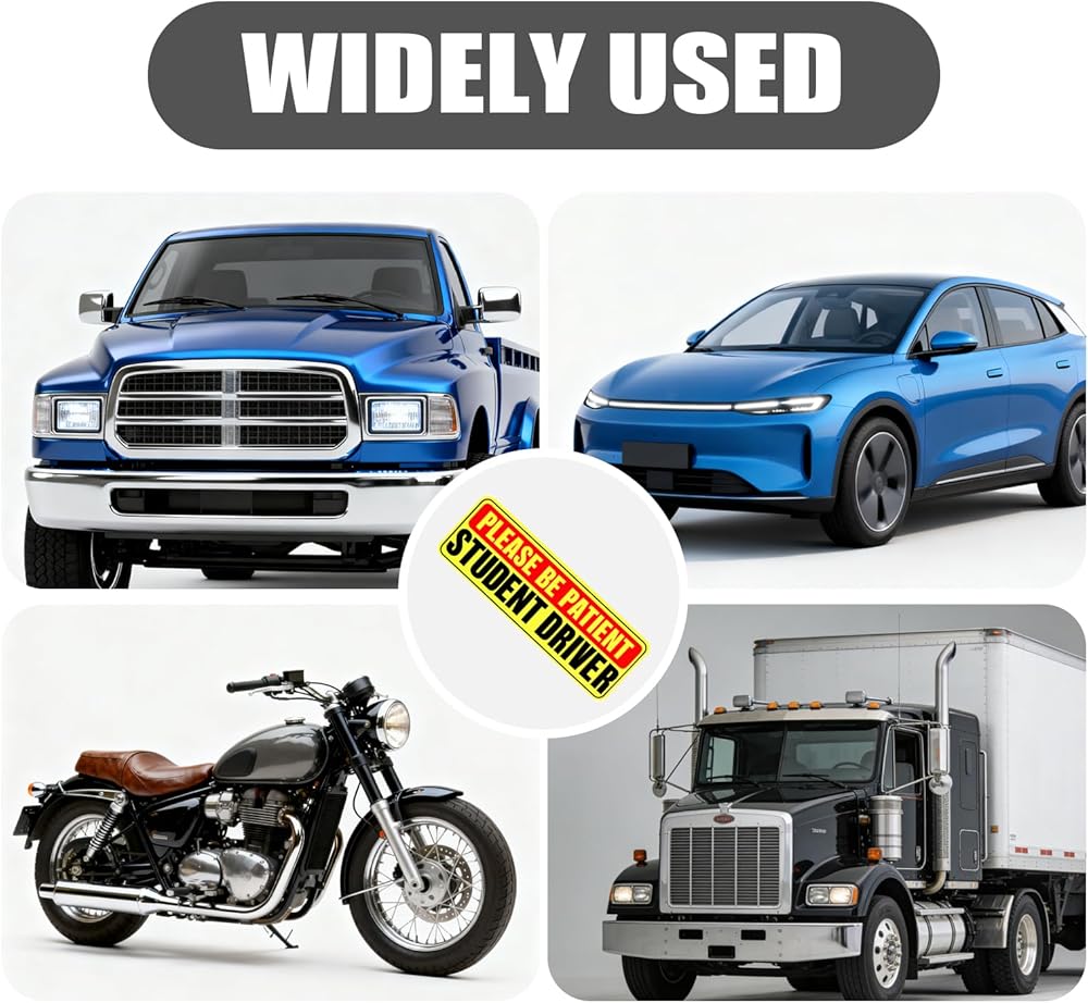 Enhanced Visibility with Eye-Catching Design: Featuring bright, colorful graphics and bold black-and-white lettering, these student driver magnets are easily noticed from a distance. Their high-contrast design increases visibility to surrounding drivers, helping promote safer driving conditions and reduce stress while learning
