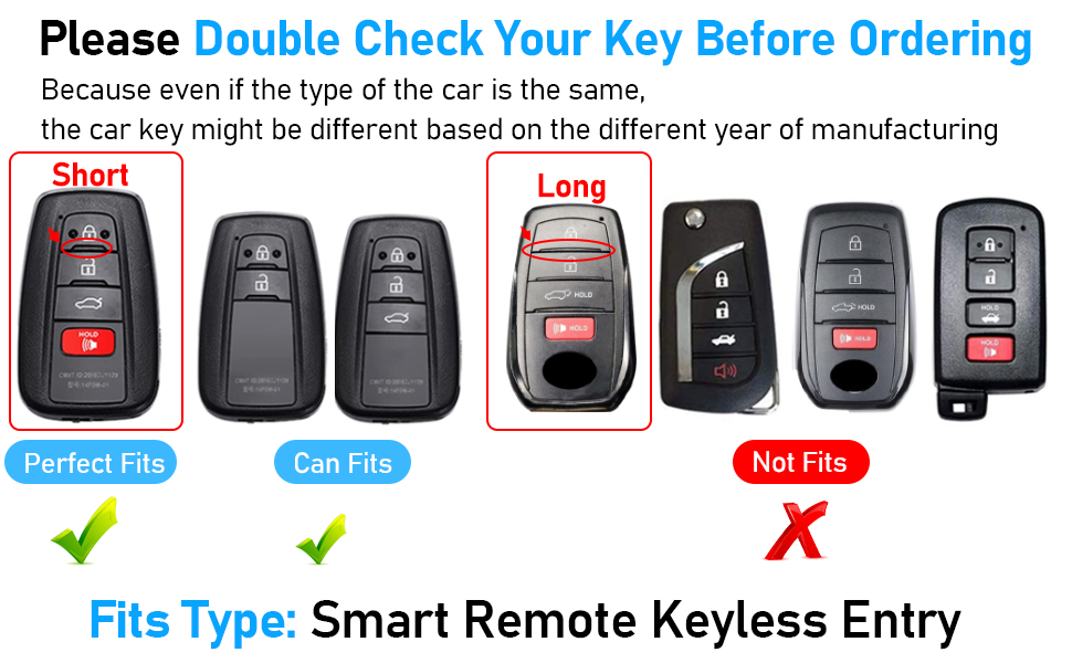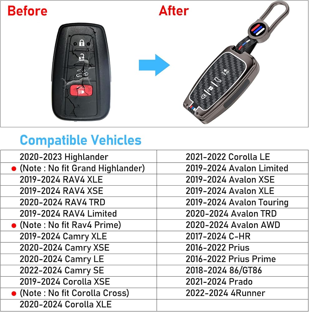 【Fits Models】Yumzeco key fob cover compatible with Toyota Key Fob Cover 2020-2023 Highlander, 2020-2024 RAV4 (No fit RAV4 Prime), 2020-2024 Camry, 2019-2024 Avalon, 2017-2024 C-HR, 2017-2022 Prius, 2019-2022 Corolla 2018-2024 GT86. 3 and 4 buttons keyless entry remote control smart key. Please refer to the picture.