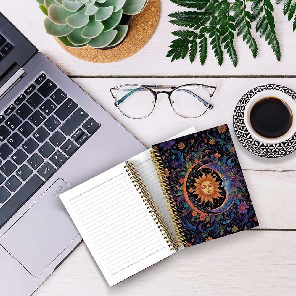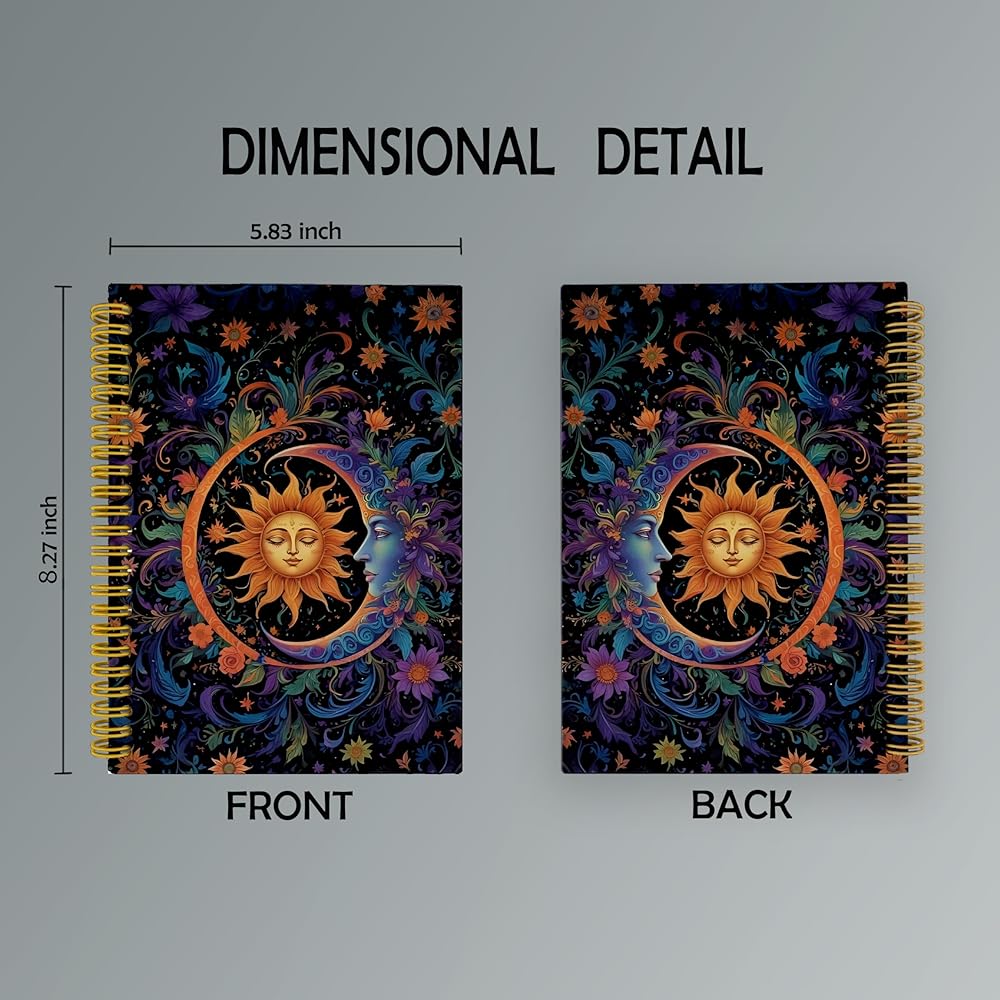 Celestial Sun and Moon Journal, Whimsical Boho Sun Moon Notebook, Witchy Notebook, Witch Journal, Dark Academia Notebook, Witchy Gifts for Women, Spiral Notebook 5.5x8.3 with 164 Pages