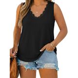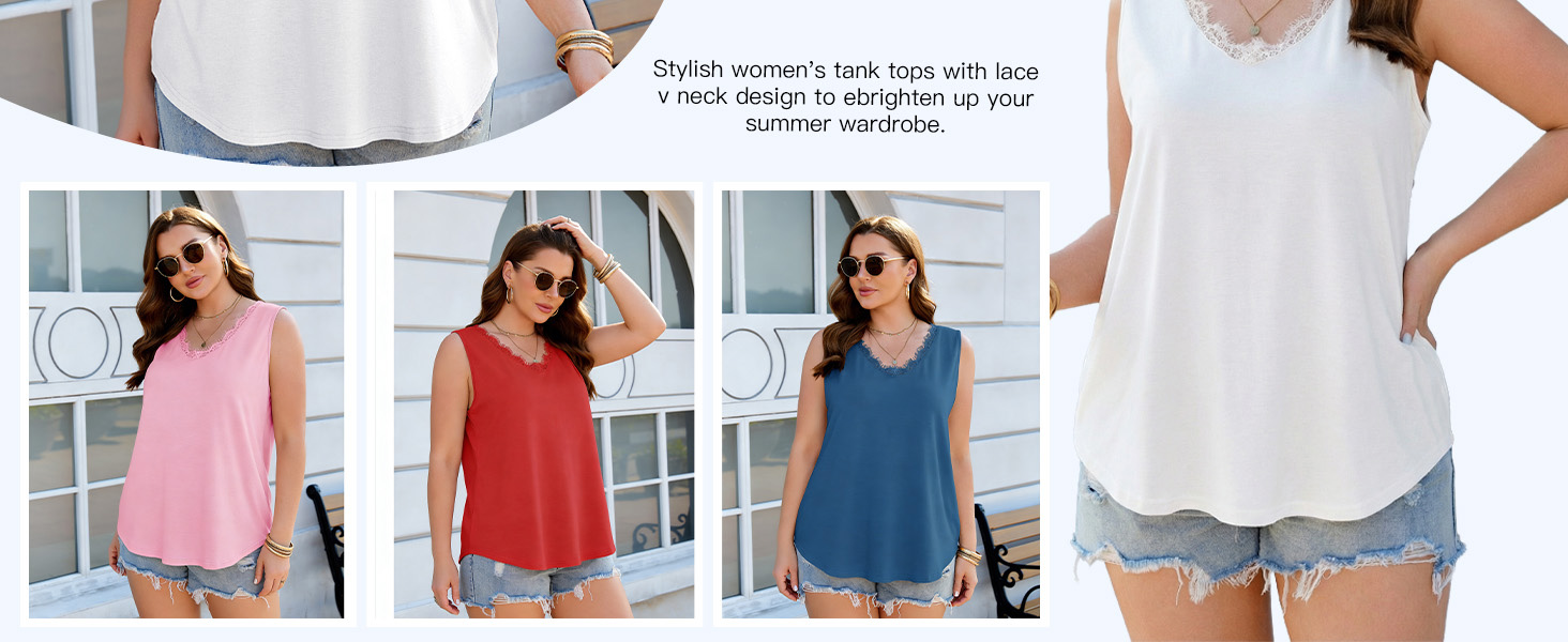 Design: Curved hem, sleeveless, lace trim v neckline, tunic tops for women loose fit dressy. Plus size sleeveless tops for women feature an elegant lace trim neckline that adds a delicate, feminine touch to your casual wardrobe.