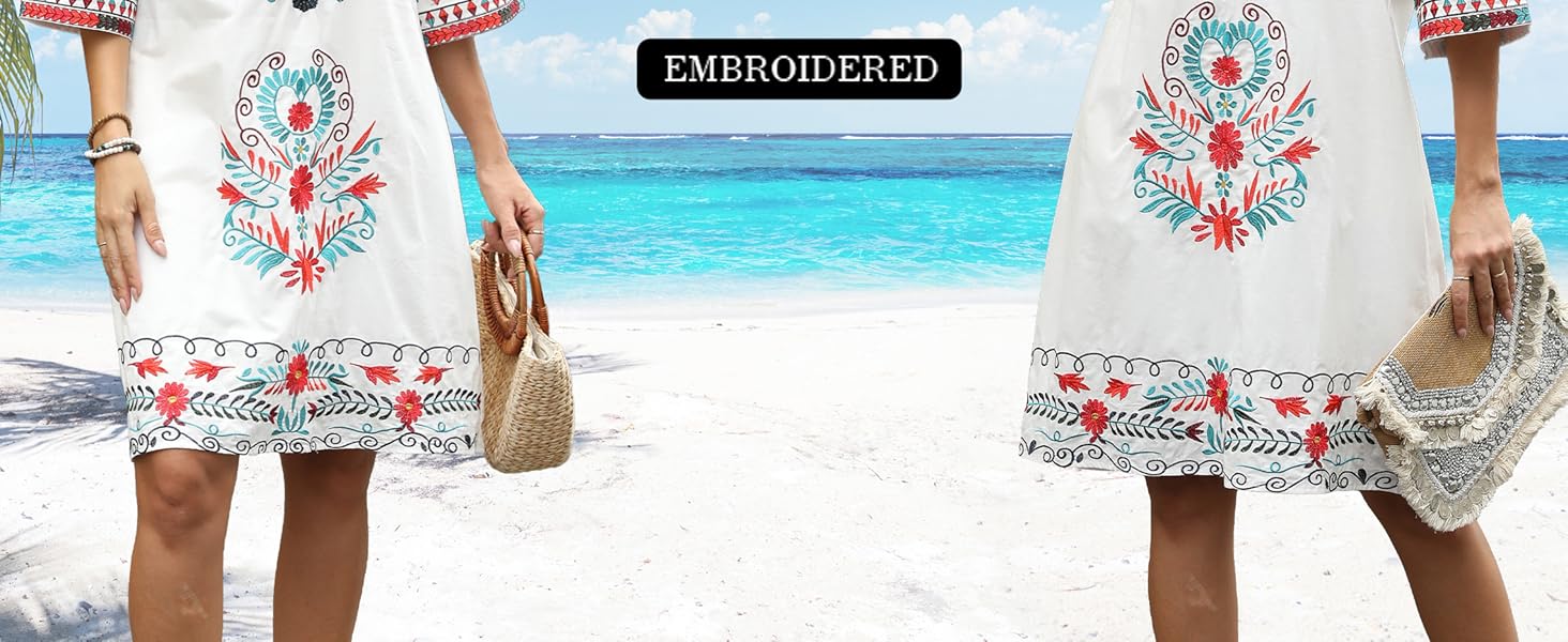Material: Mexican embroidered dress is made of high quality cotton, sweat-absorbent and breathable, lightweight and soft, very comfortable to wear