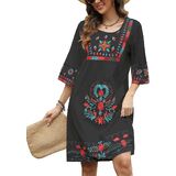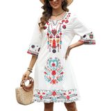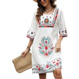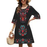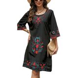Design features: Women's embroidered dress with exquisite embroidery technology, gorgeous floral embroidery pattern, round neck, 3/4 sleeves, loose fit for most women's body types, spring, summer, fall, winter are suitable to wear!