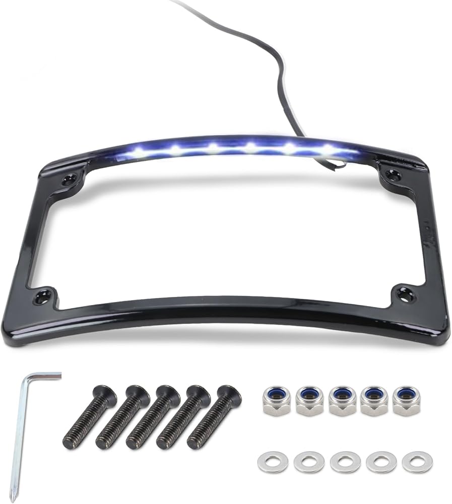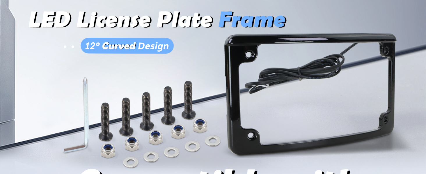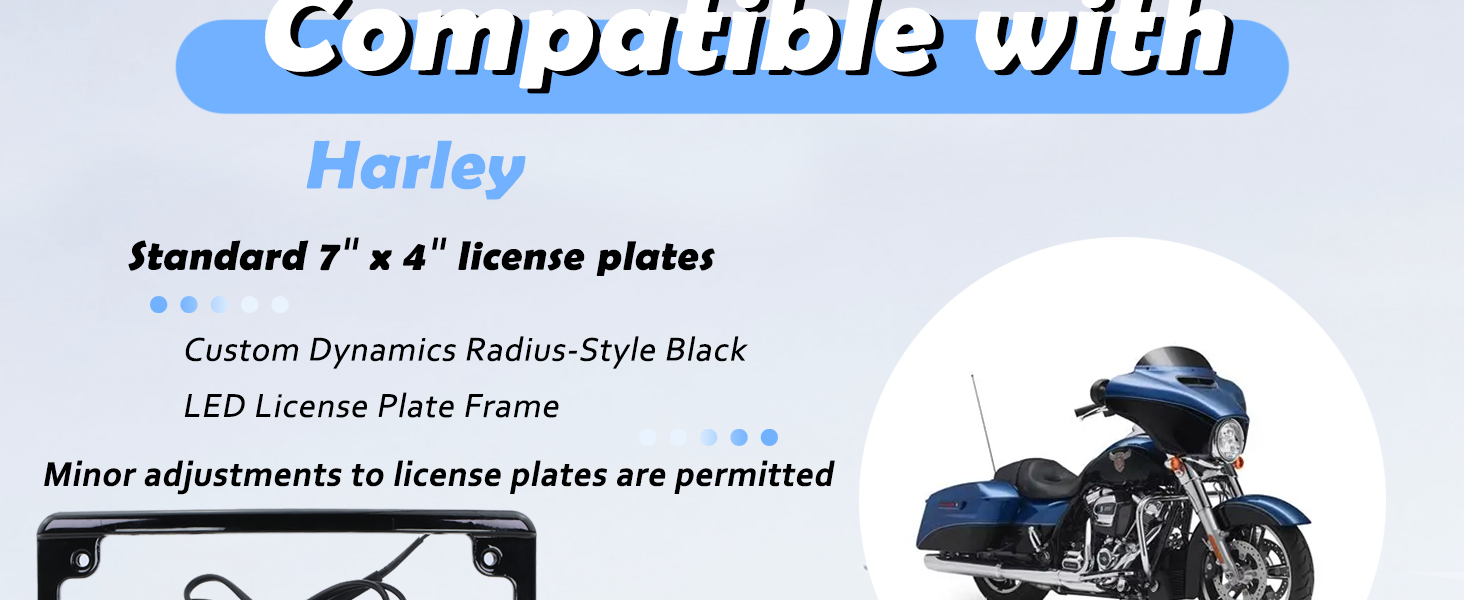 【Compatibility】This LED license plate frame is designed for motorcycles using a 4” x 7” license plate with mounting holes spaced 5-3/4" × 2-13/16" center-to-center.In certain installation scenarios, minor bending, trimming, or slotting of the license plate may be required to achieve precise mounting and cable routing. Before purchasing, please verify that the product dimensions match your vehicle