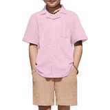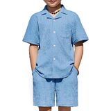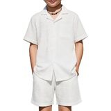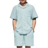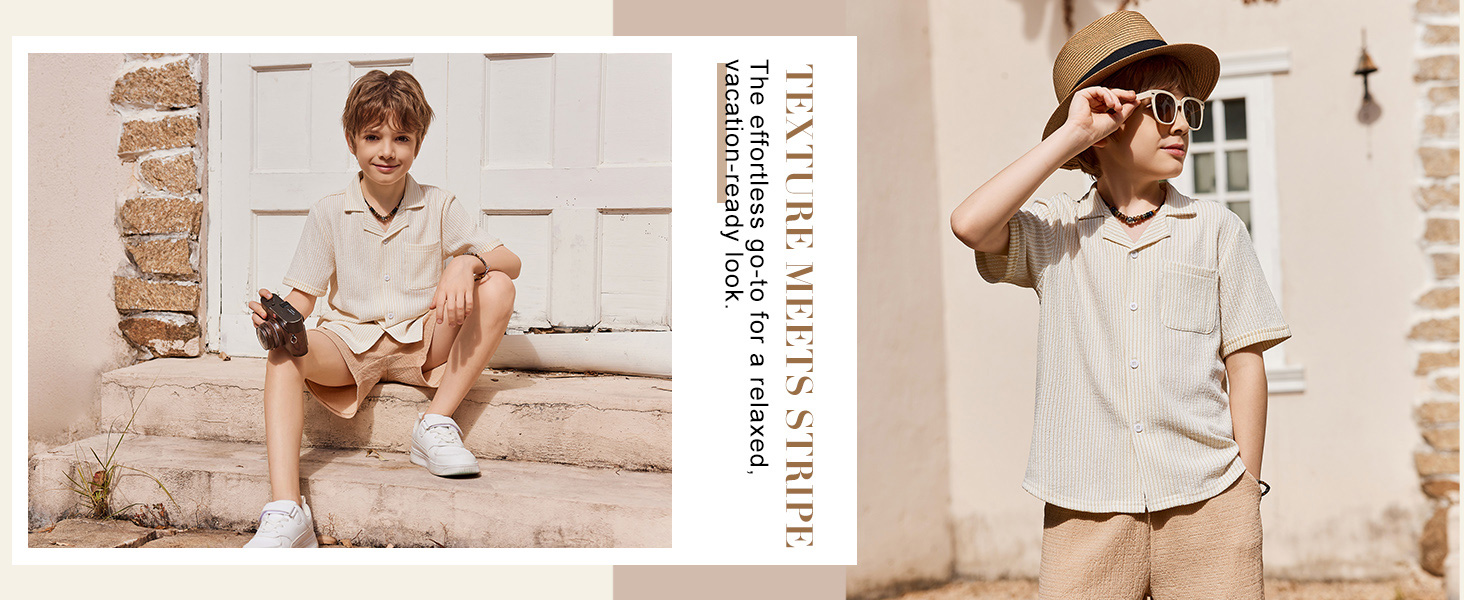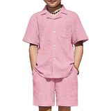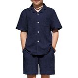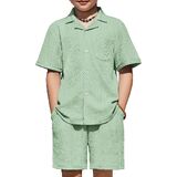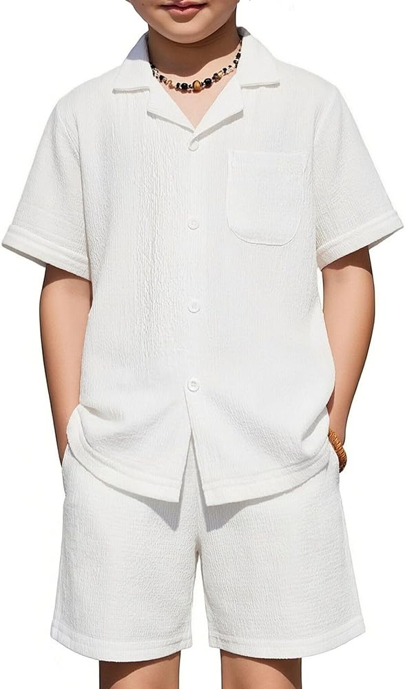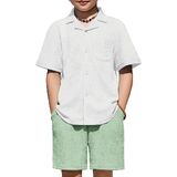 Smart & Stylish Design: The ribbed textured outifts features a trendy cuban collar shirt with a chest pocket and curved hem, and the Shorts have an elastic waistband and handy side pockets for easy movement.
