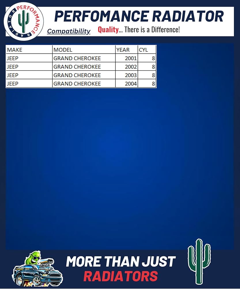 Direct Replacement: This direct fit radiator is precisely engineered to be Compatible with 2001 – 2004 Jeep Grand Cherokee models, ensuring perfect fit, form, and function for seamless installation
