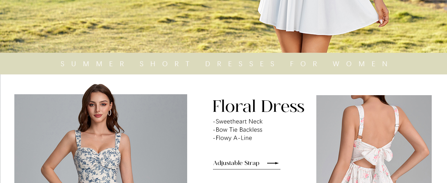 FEATURES: Flowy dresses for women, Sweetheart neckline dress, a line mini dress, flowy mini dress, fit and flare dress for women, knee length dress for women, bow tie backless, adjustable strap