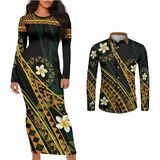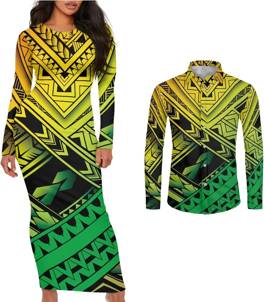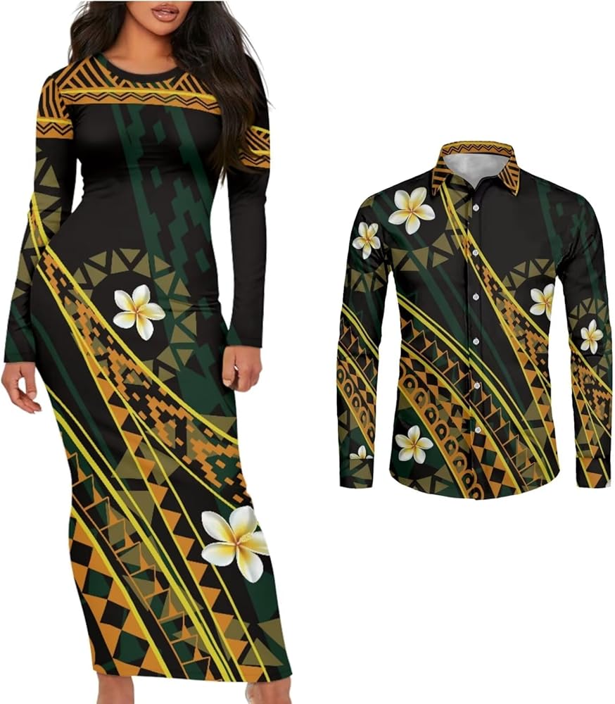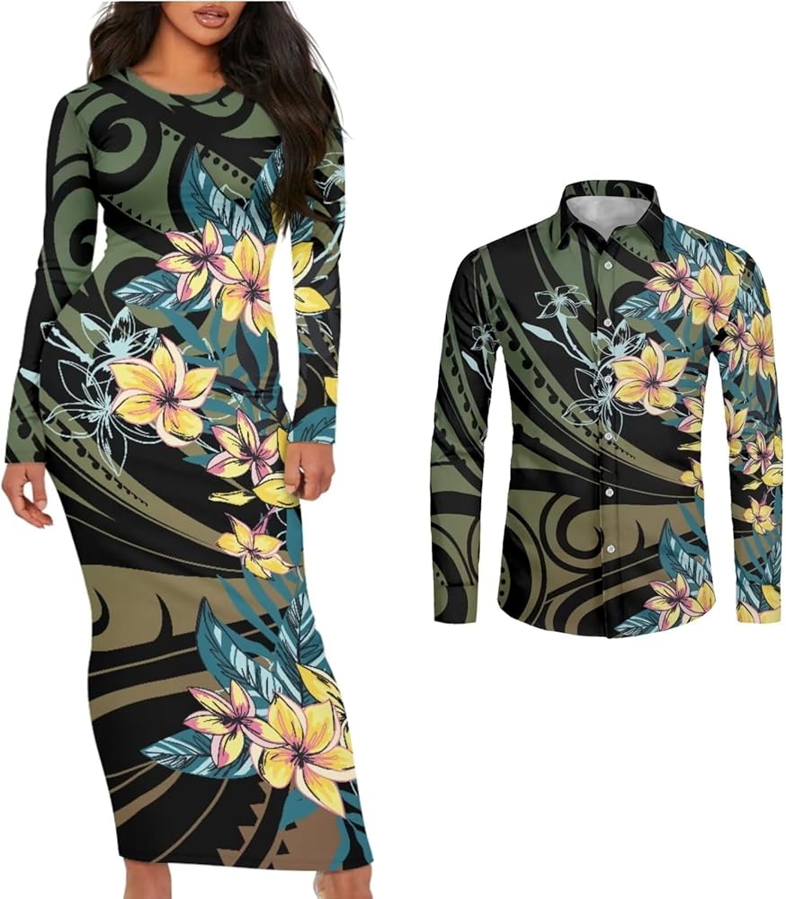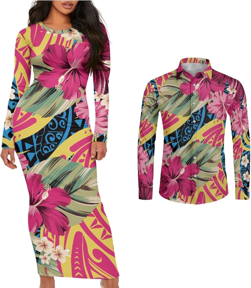 Features:Couple Clothing Long Sleeves Women'S Dresses And Men'S Shirts Can Be Ordered Separately Polynesian Couple Wear, Island Dress And Shirt, Island Style