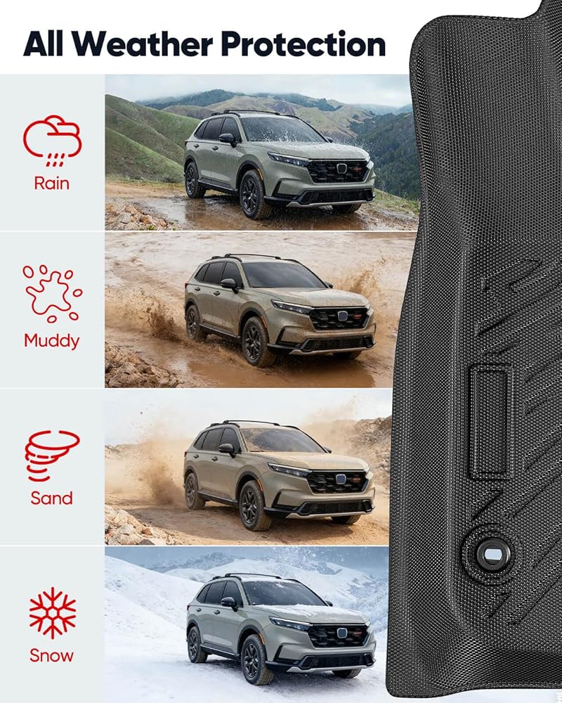 Custom Fit for CR V 2023-2026 Model: Custom designed Floor liners for CR-V 2026 2025 2024 2023.Fit LX EX EX-L Sport Hybrid Sport-L Hybrid Sport Touring Hybrid TrailSport Hybrid,These liners provide precise coverage for the floor, includes 3 floor mats + 2 trunk backrest mat + 4 door sill strips + 1 protective plate + 1 trunk mat +1 interior trunk door sill strip