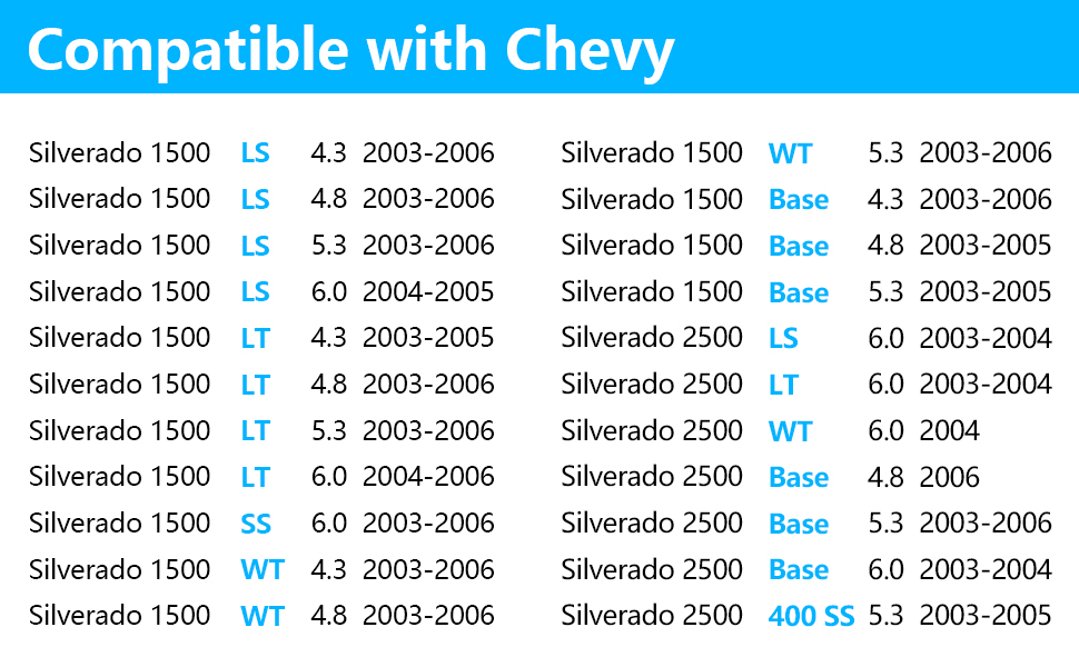 - for Chevy Silverado 1500 2003-2006, Silverado 2500 2003-2006