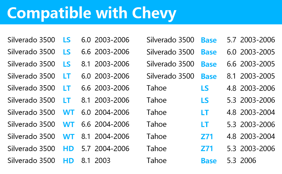 - for Chevy Silverado 3500 2003-2006, Tahoe 2003 -2006