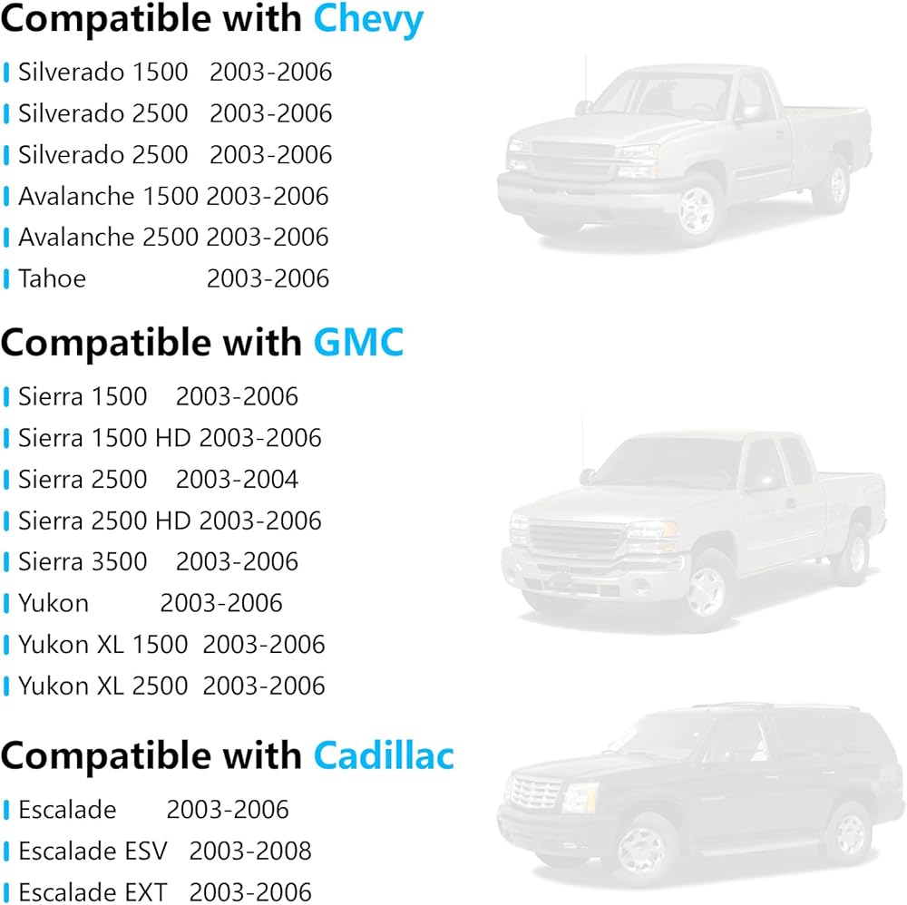 - for Cadillac Escalade 2003-2006, Escalade ESV 2003-2008, Escalade EXT 2003-2006