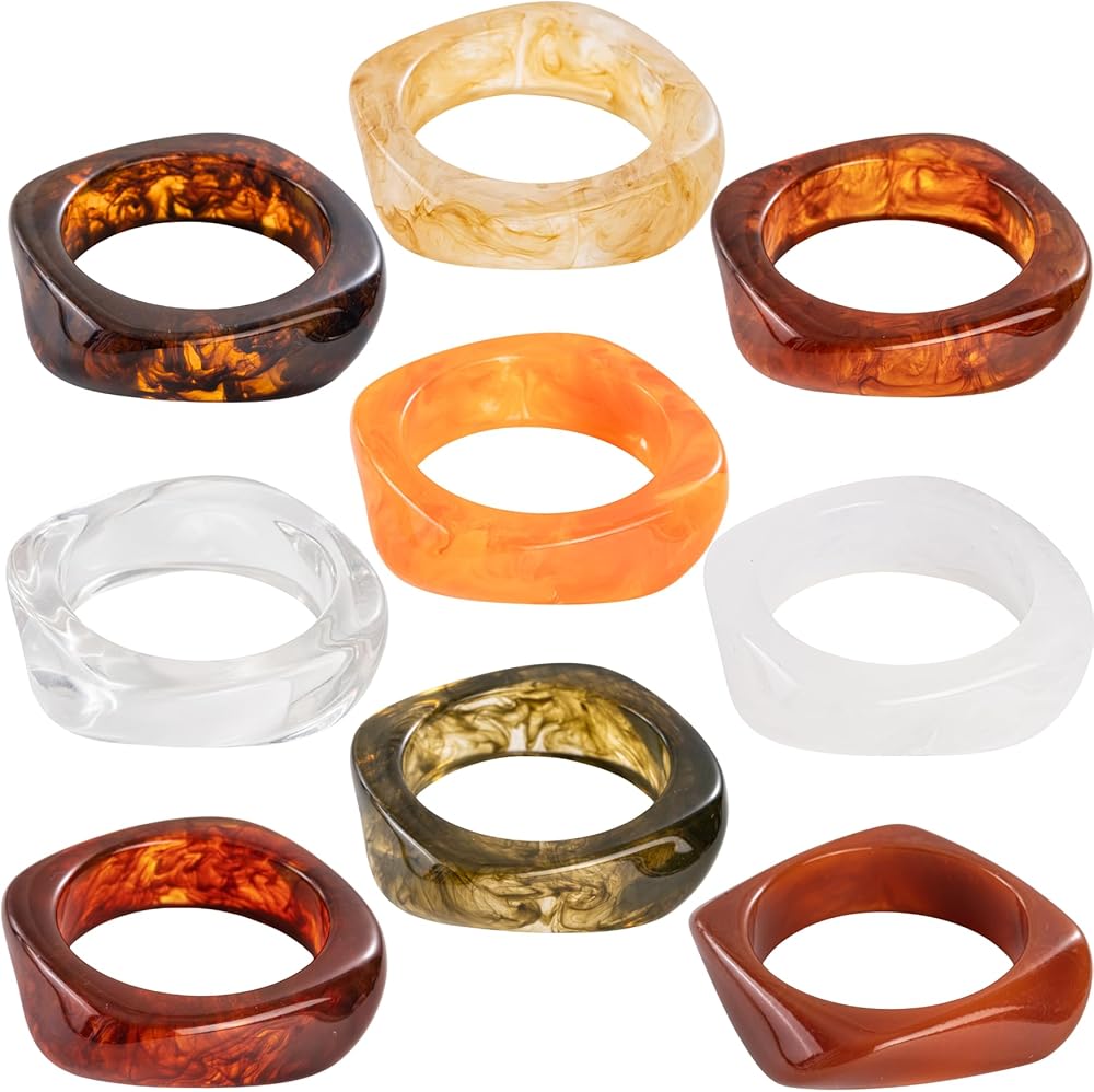 TIPS FOR WEARING AND REMOVING:To make wearing and removing the bracelet easier, apply a small amount of soapy water or hand lotion to your wrist and the inside of the bracelet to reduce friction. If the bracelet catches on your wrist bone, try gently rotating it to find an angle that slides through more easily. Throughout the process, be patient and handle with care to avoid injuring your wrist. The same method applies when removing the bracelet. ABUNDANT VARIETY:This package includes 9 acrylic bracelets in a variety of different colors, offering plenty of options and a rich palette. Mix and match according to your style and mood, or gift them to your friends and family. This thoughtfully designed package ensures you have a diverse selection of bracelet accessories at your disposal. EASY TO MAINTAIN, LONG-LASTING DURABILITY:These resin bracelets are crafted from high-quality materials, ensuring durability and the ability to withstand daily wear while maintaining their original appearance. Cleaning and maintaining the bracelets is simple; just wipe them with a damp cloth to remove dirt and keep their shine. THE NOVELTY GIFT:This bracelet makes an ideal gift for friends and family, practical and stylish for various celebrations and holidays, such as Halloween, 80s and 90s retro parties, Christmas, proms, and birthday parties. It not only demonstrates your taste but also brings surprise and joy to the recipient.