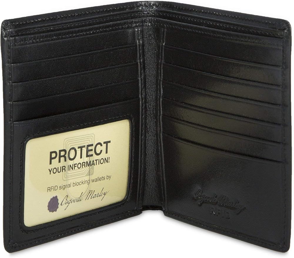 The Osgoode Marley RFID Sienna ID Hipster Wallet has nine card slots and an RFID lining that protects against identity theft. The hand stained Italian vegetable-tanned leather achieves old-world charm with a glossy finish and sturdy feel.