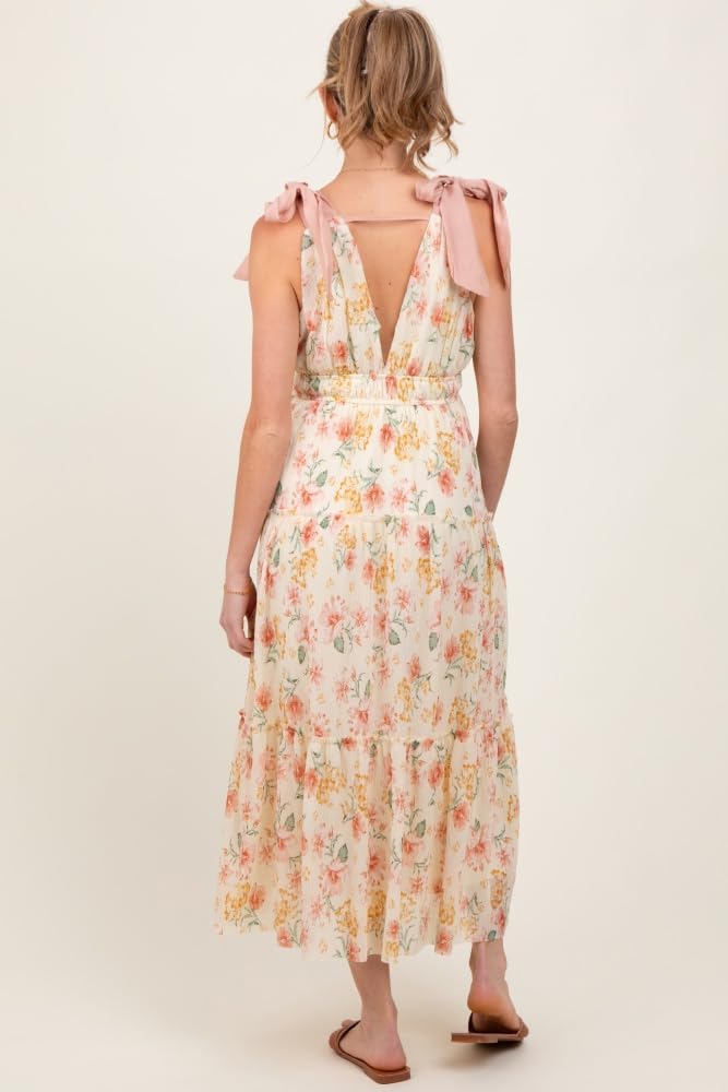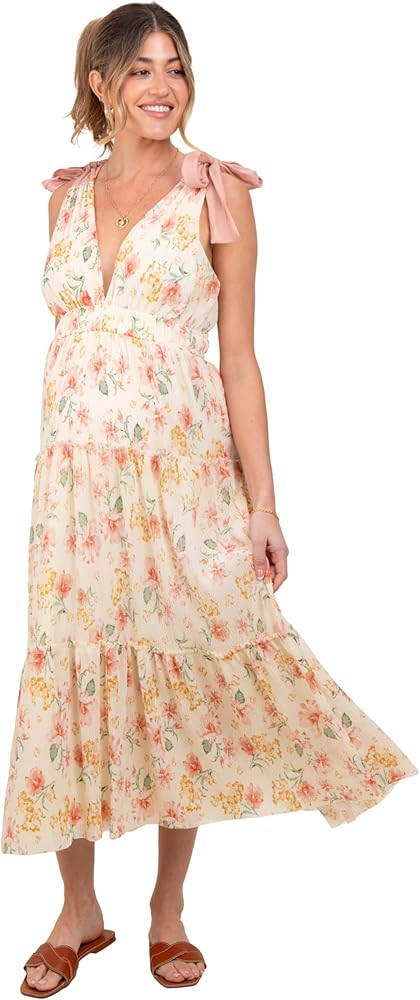 PinkBlush Floral Shoulder Tie Deep V-Neck Tiered Maternity Maxi Dress