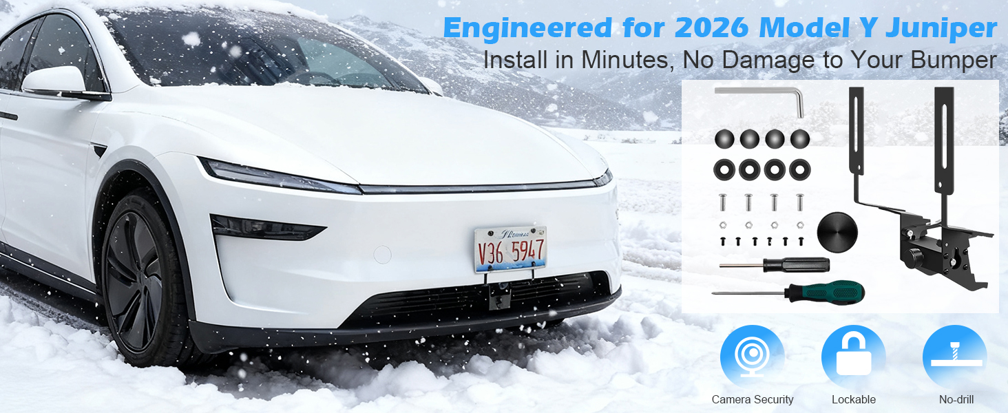 No-Drill, No-Adhesive Installation: Easily mount your license plate without drilling or adhesives—no damage to your Tesla's bumper. Uses factory mounting points for a secure fit that preserves your Model Y Juniper's sleek exterior
