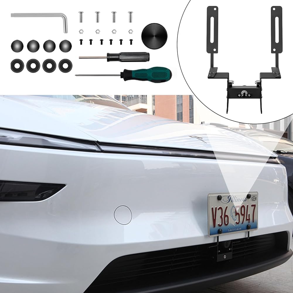 2025 2026 Tesla Model Y Juniper Lockable No-Drill Front License Plate Holder, Anti-Theft License Plate Bracket Mount, No Adhesive, No Camera Block, Compatible with Model Y Accessories