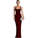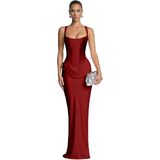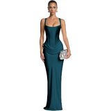INEWER Square Neck Bridesmaid Dresses Long for Women Satin Pleated Formal Dresses