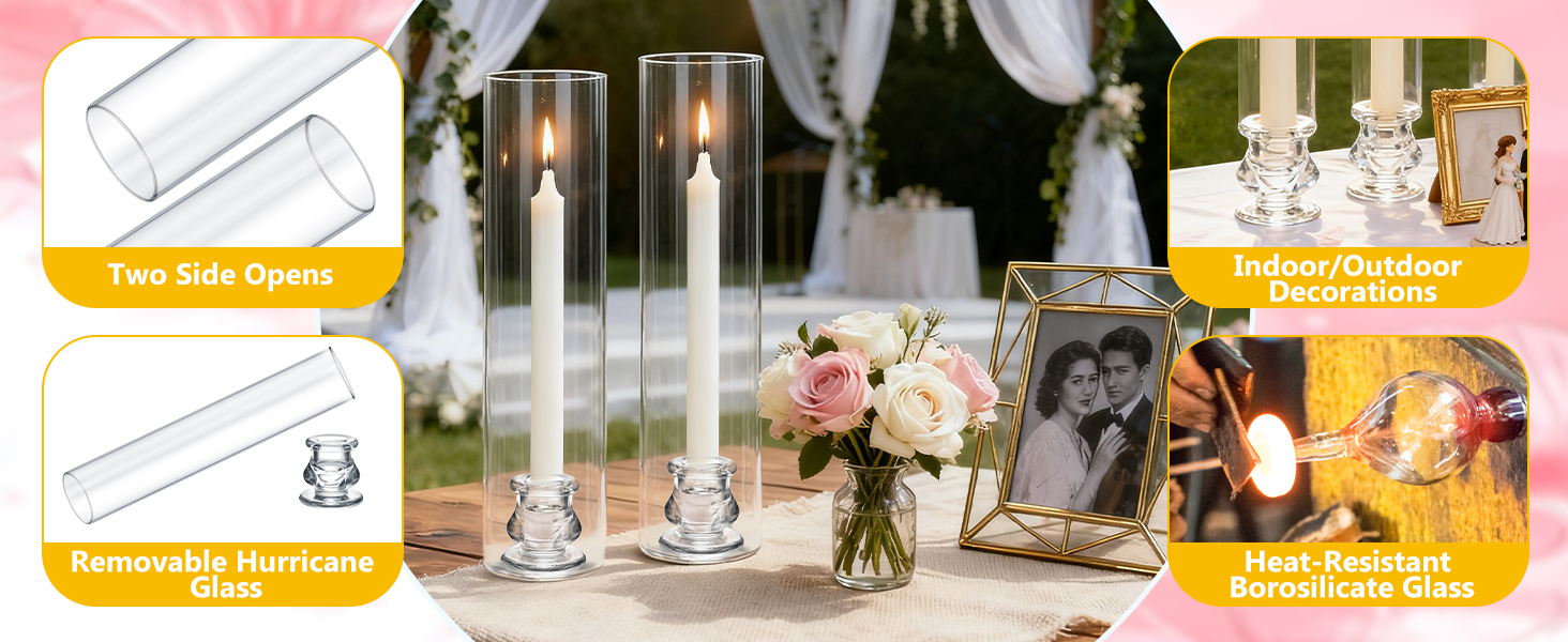 【Safe Packaging】Each set of hurricane glass candlestick holders is covered with double-layer foam cotton packaging and packed in a strong carton box to reduce the damage during transit, please feel free reach out to us if you received damaged vases, Please feel free reach out to us if you recevied broken vase,we will send an replacement to you right now.
