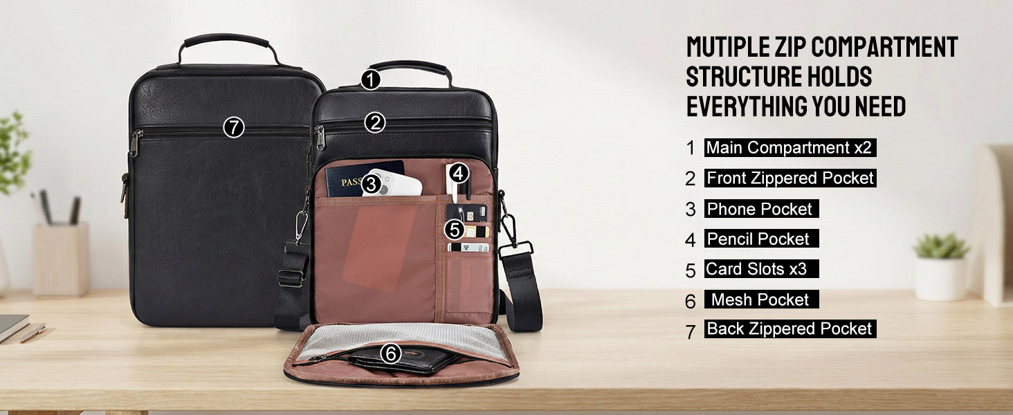 【PRATICAL MULTIPLE POCKETS】- The Crossbody Bag for Women and Men has enough capacity storage,Main zip-pocket x1, front pockets x2,back zip-pocket x1, multiple compartments design to separate your daily essentials and keep your belongs organized, provides enough space for your ipad, tablet, phones, credit card, books, cables, wallets, passport, cash, keys, glasses and other small items.