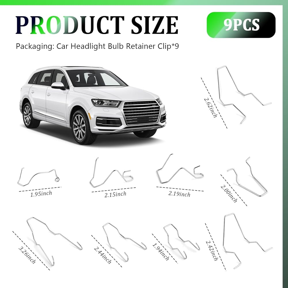 1. 9 different shapes and sizes of headlight bulb retainer clips, plenty of them to meet your installation needs