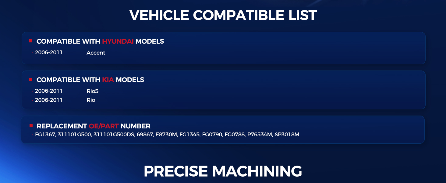 [OE Standard] 100% compatible. Please confirm the year/make/model of the vehicle you are purchasing before purchasing. You can refer to the fitment description on the product detail page or use the "Amazonconfirmedfit" in the upper left corner of the link to confirm
