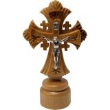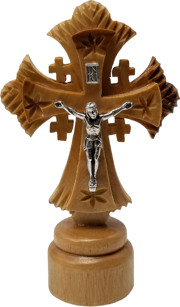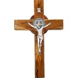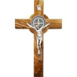 This high quality, solid wood cross is handcrafted out of natural olive wood from Bethlehem. In St. Benedict style, it shows in no uncertain terms the selfless and painful sacrifice that Jesus made for us on the cross. This bold statement of faith will speak volumes about what you believe in any setting: home, work, church, or elsewhere.