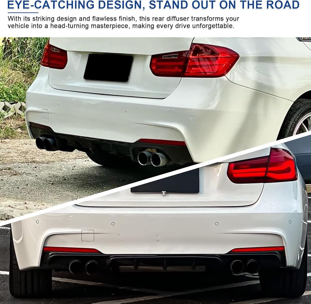 Precise Fitment: Direct replacement rear diffuser designed specifically for for 2012 2013 2014 2015 2016 2017 2018 BMW 3 Series F30 F35 328i M Sport Sedan (NOTE:WILL NOT FIT FOR F30 Base & M3 models). Always verify exact fit using your vehicle's year/make/model