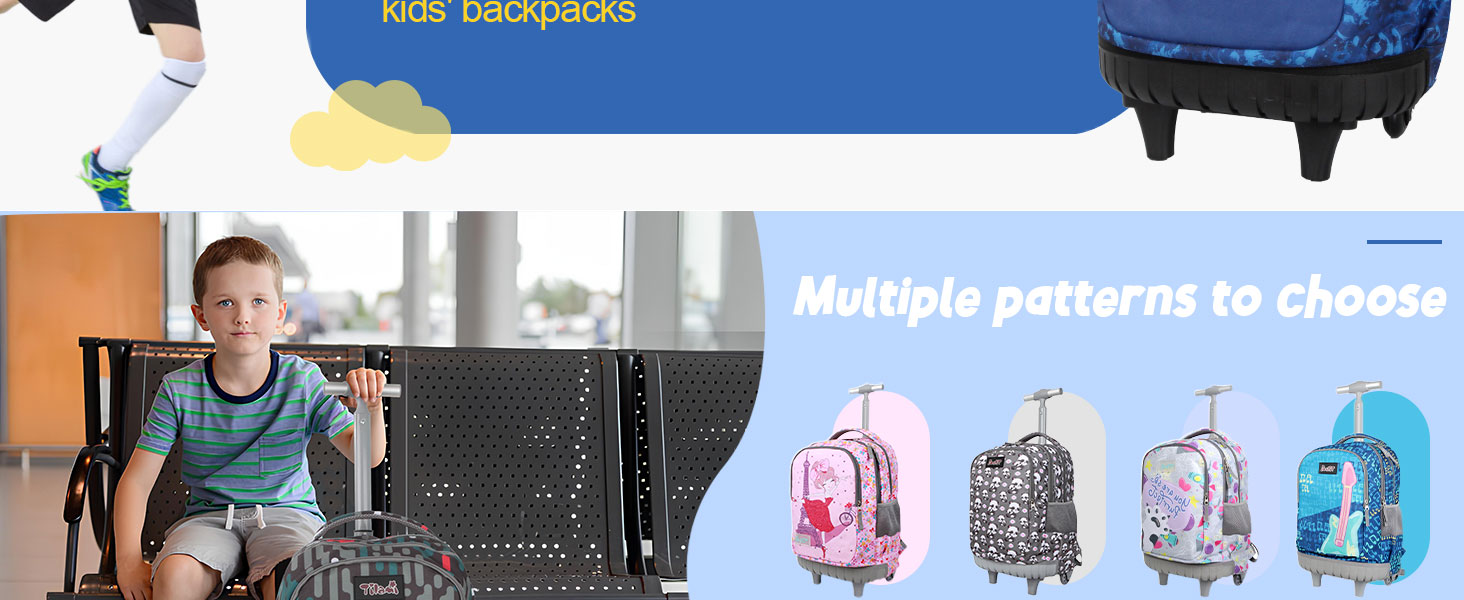 【Multiple Compartments】Tilami rolling backpacks have remarkable patterns popular with kids and impressive designs, high quality fabric, and big storage capacity up to 35 Liters, sorting your belongs by different compartments, multiple layers design meets various storage requirements.