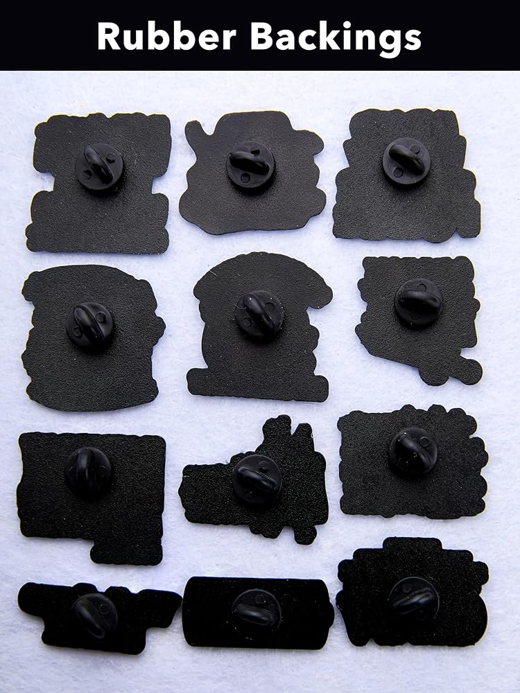 Made with a alloy metal base and finished with enamel-style color, these pieces are built for regular wear on backpacks, denim, hats, and ID lanyards. Rubber clasps help keep them in place, and the included plastic storage box makes it easy to organize your collection, pack for travel, or store extras between uses.