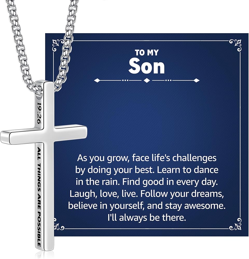Gifts for Grandson: This necklace is a meaningful gift for grandson. This cross necklace has an inspiring Bible verse engraved on its side - "With God All Things Are Possible," which brings good luck and encouragement to the wearer. It is a gift with a sacred meaning, a symbol that reminds you of hope in adversity, and it can stand as an emblem of faith, love and hope