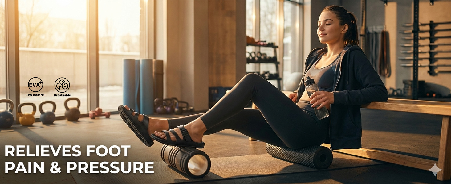 Ergonomic Design: Professional medical personnel design through bionic technology, memory foam insoles conform to the footbed. Firm elastic adjustable straps securely hold the feet without excessive constriction, helping alleviate back and joint swelling. The insoles feature massage nubs that effectively reduce Achilles tendon tension and relieve fatigue, providing sustained comfort for extended walking and standing.