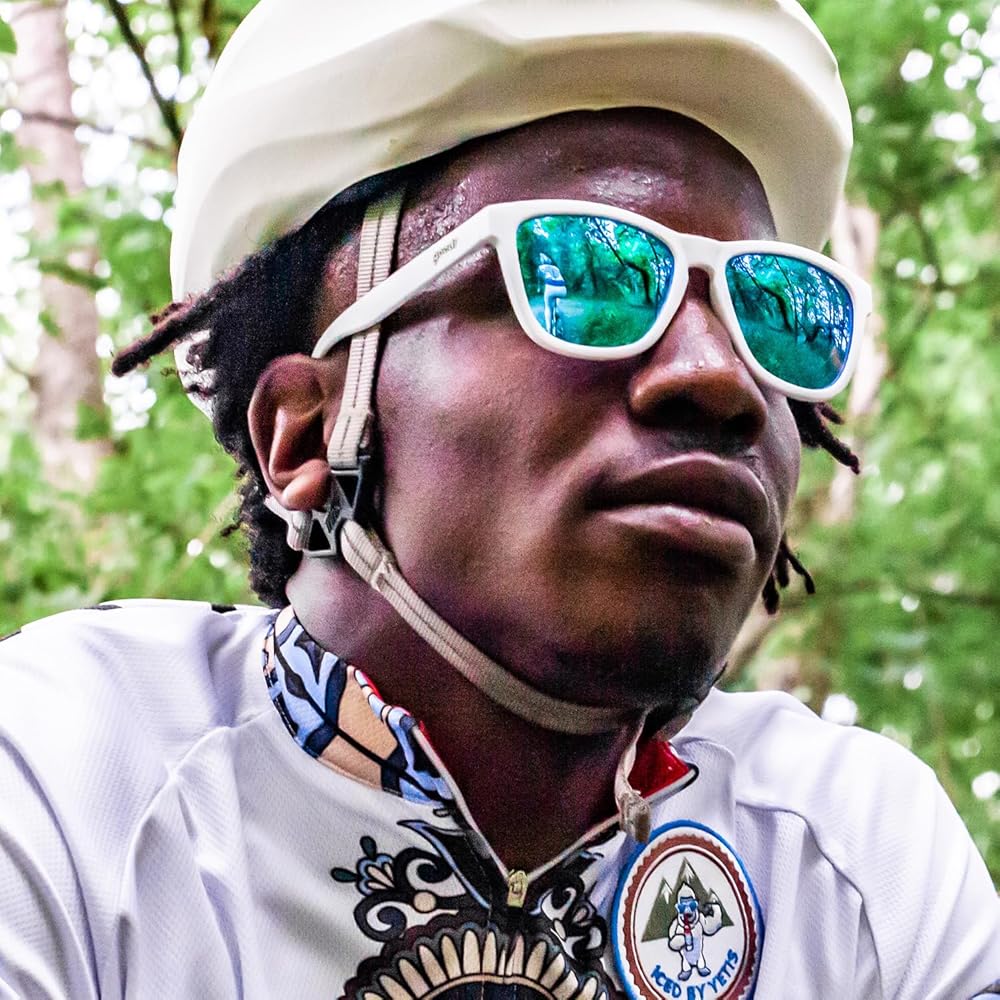 White and blue yeti-approved polarized active shades that cut down on snow glare and won't slip or bounce as you sprint for your life. UV400 protection to keep your peepers safe too. Why did a yeti approve them if it helps you escape? They love a challenge.