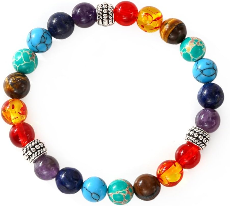 Handmade Healing Design: Artisan-crafted with seven unique natural stones representing chakra energy centers. This healing crystal beads bracelet promotes balance and harmony while offering spiritual protection during meditation and daily wear.