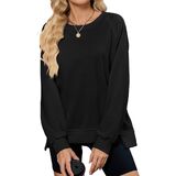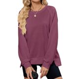 Featuer:2025 fall winter trendy clothes, preppy aesthetic sweatshirt. Loss fit side slit design for women teen girls, fashion essentials. Make you warm and dazzling.
