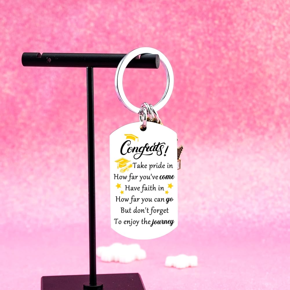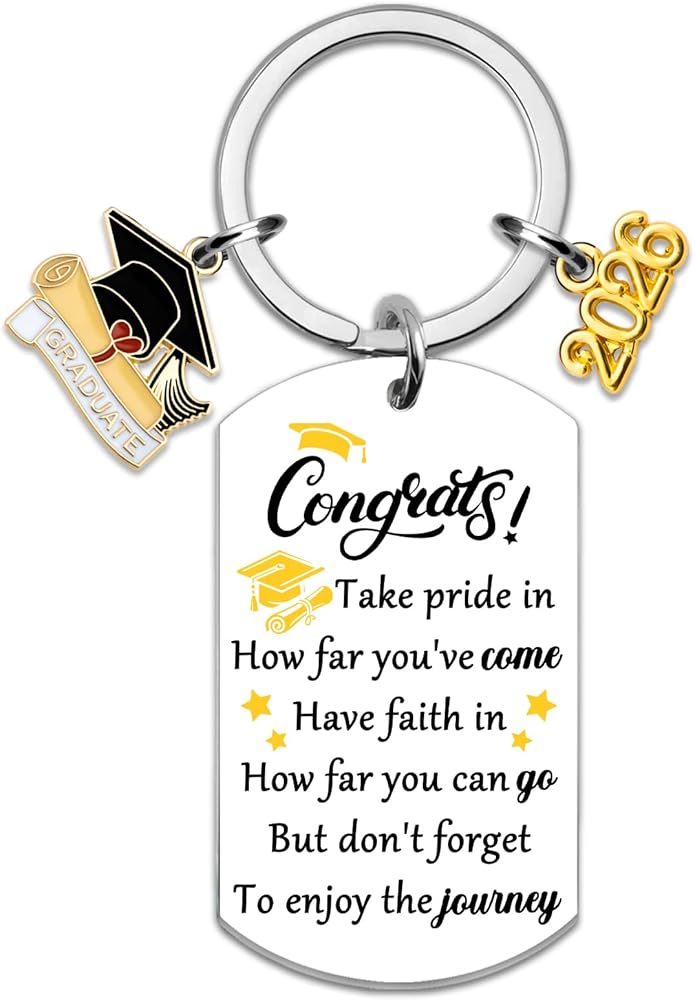 2026 Graduation Gifts/Class Of 2026 Gifts:Graduation gifts for her,graduation gifts for him.The graduation keychain is printed with"Congrats!Take pride in how far you've come,have faith in how far you can go,but don't forget to enjoy the journey."It symbolizes celebration of graduates achievements,encouragement for future dreams.Graduation gifts 2026,graduation decorations 2026.