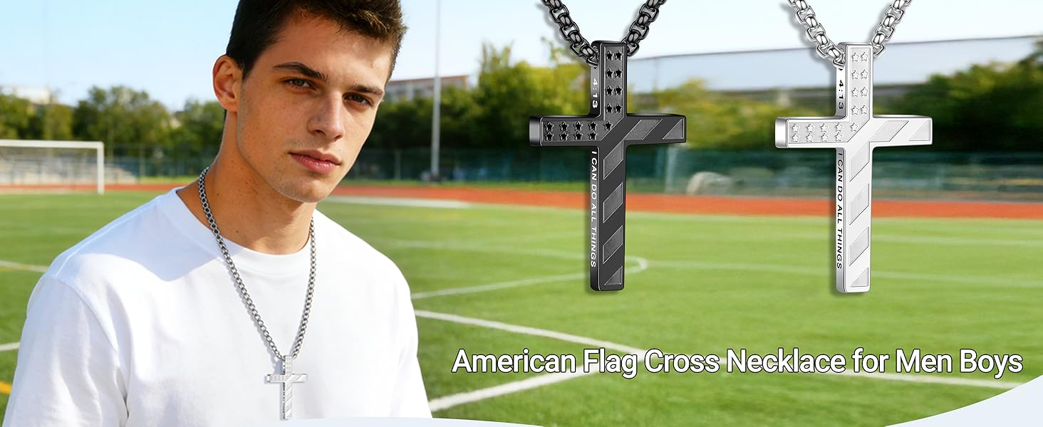24-Inch Chain: The men's cross necklace features a 24-inch chain with a 1.57inch cross pendant, suitable for men and boys of all sizes. Its lightweight design ensures comfort for school, work, or casual outings.
